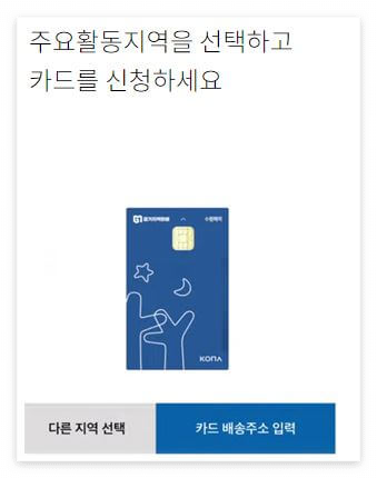 2. 앱에서 주요 활동지역 (경기도 31개 시 군)을 선택하고 카드 배송주소 입력 후 카드를 신청하시면 됩니다.