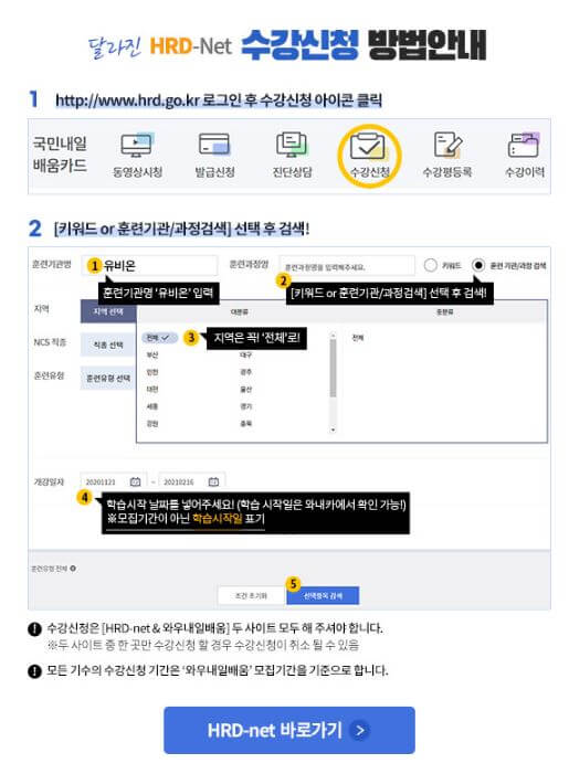 국민내일배움카드 교육 수강신청 방법