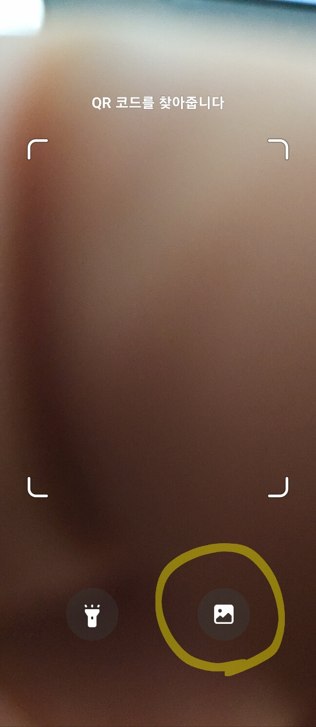 그러면 다음과 같이 'QR 코드를 찾아줍니다' 화면이 나오는데요, 오른쪽 아래 갤러리 아이콘을 선택합니다.