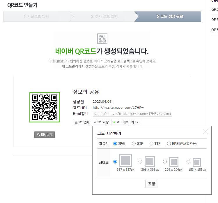 네이버 QR 코드 사이트로 이동합니다: https://qr.naver.com/