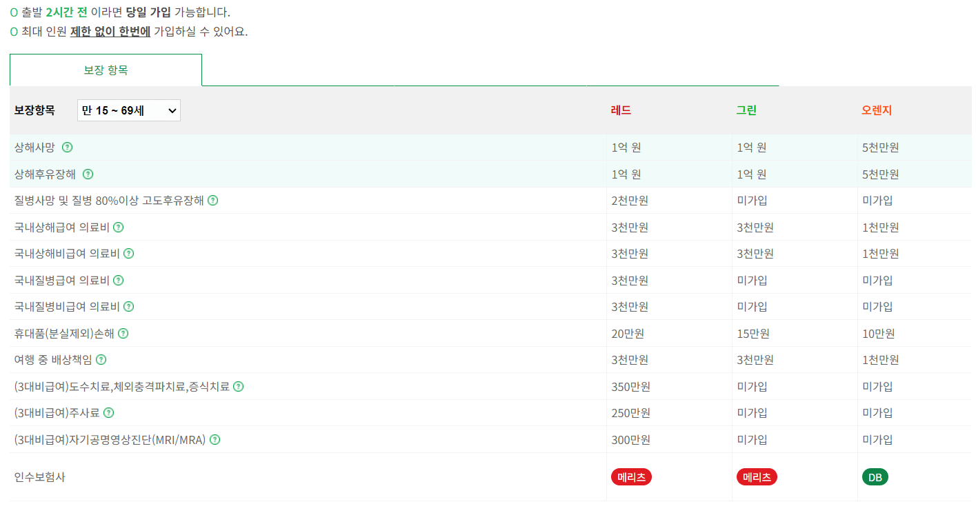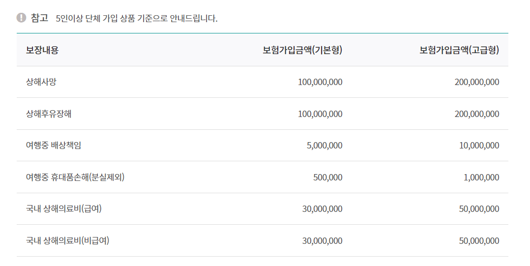 단체여행자보험 가격 비교 및 보장내용