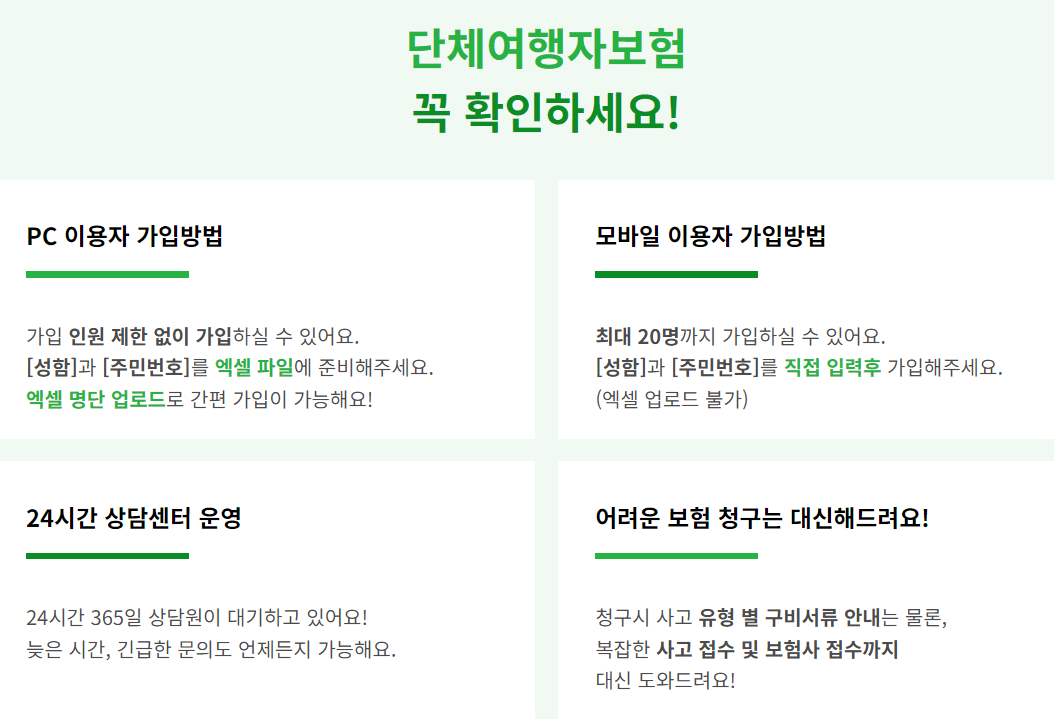 단체 여행자 보험 확인사항