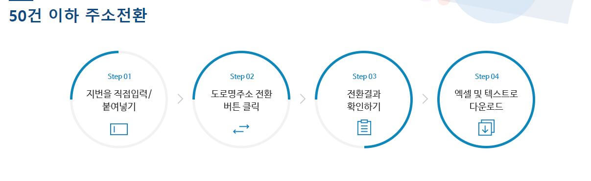 정부 공식 사이트인 주소정보 누리집에서는 대량으로 지번주소를 도로명 주소로 변환시킨 후 엑셀 및 텍스트로 다운로드할 수 있는 주소 전환 서비스를 제공하고 있습니다. 50건 이하, 3,000건 이하 및 100만 건 이하까지 주소전환이 가능하니 업무상 대량으로 주소 전환이 필요하신 분들은 바로 이용하세요!