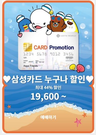 삼성카드는 본인 44%, 동반자 3인 30% 할인혜택이 있습니다!