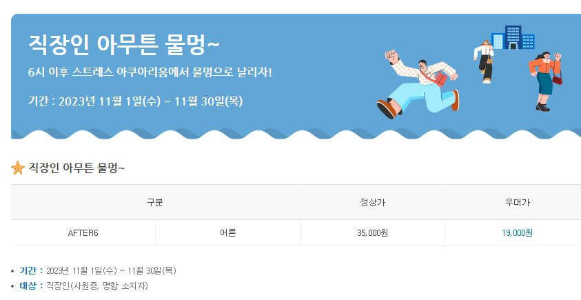 저녁 6시 이후 입장 시 직장인은 55% 할인을 해주니 꼭 사원증이나 명함을 지참하세요!