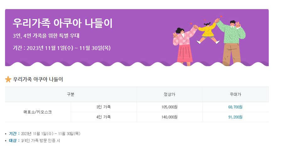 카드가 없어도 3,4인 가족 방문 시 35% 할인 혜택이 있으니 가족관계증명서를 지참하세요!