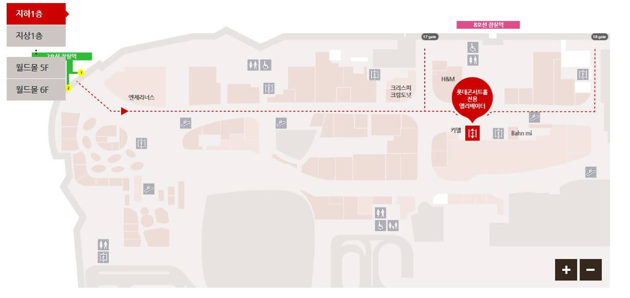 지하철 2호선 잠실역 1번 출구와 2번 출구 사이의 롯데월드몰 입구를 이용하거나 또는 8호선 잠실역 10번 출구와 11번 출구 방향을 이용하시면 됩니다. 지상 1층에서 8호선 지하철 11번 출구 앞의 문으로 입장할 경우 H&M 과 키엘 매장 사이에 있는 롯데 콘서트홀 전용 엘리베이터를 타시면 됩니다!