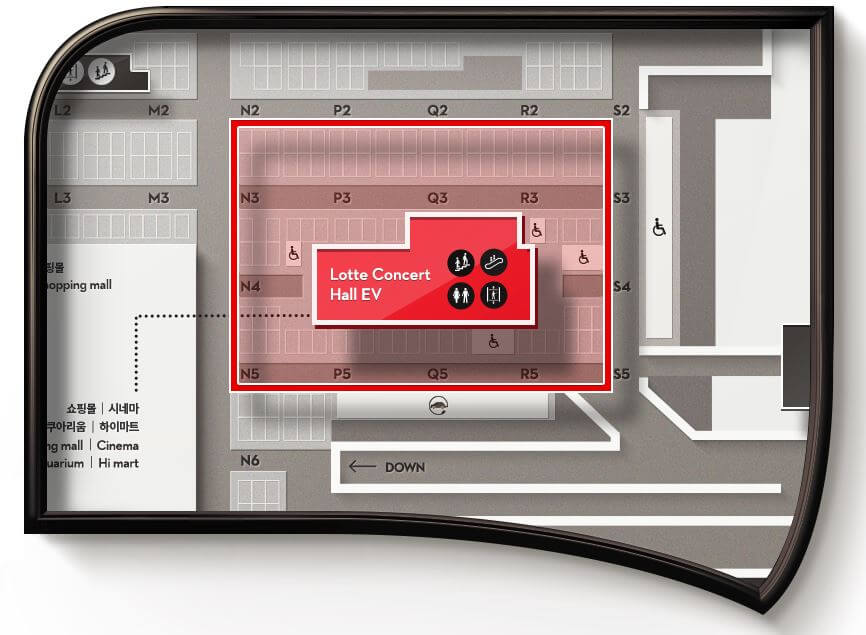 롯데 콘서트홀 엘리베이터를 바로 탈 수 있는 주차 기둥위치를 아래 그림에서 확인하시면 아주 편리합니다. 넓은 주차장에서 헤매지 않고 바로 콘서트홀로 이동하세요! 롯데월드에서 주차위치 사진촬영은 필수입니다!