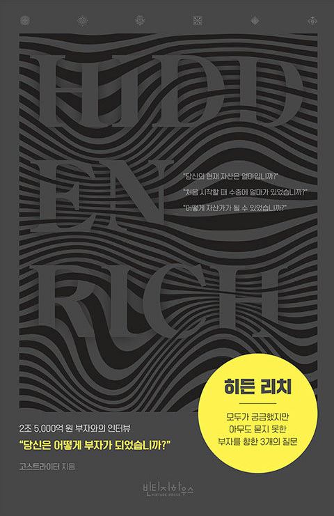 히든 리치는 고스트 작가가 들려주는 진짜 부자들의 이야기입니다. 대필을 위해 만난 대한민국 최상위 부자들을 인터뷰하다 알게 된 부자 되는 비밀에 대해 적나라하게 알려줍니다. 모두가 궁금했지만 아무도 묻지 못한 질문들을 통해 그들의 책에는 실지 못했던 부자 되는 방법들을 바로 공개합니다.