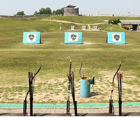 연무대는 수원화성에서 가장 경치가 좋은 곳으로 탁 트인 시야에 화성의 멋진 모습을 감상할 수 있으며, 특히 활쏘기 국궁체험을 할 수 있어서 우리는 이곳을 가장 먼저 방문하였습니다. 미국인 가족들이 우리나라의 활쏘기를 참 좋아했습니다.