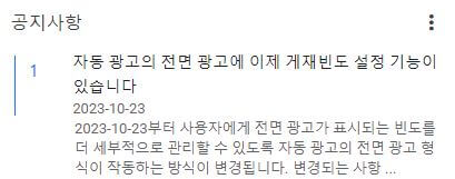 오늘 구글 애드센스의 공지사항을 보니 아주 흥미로운 내용이 게재되어 있습니다. 2023년 10월 23일부터 내 사이트를 방문하는 사용자에게 전면광고가 표시되는 빈도를 더 세부적으로 설정할 수 있고, 자동광고의 수까지 설정할 수 있다는 것인데요. 직접 해보려니 어디에 뭐가 있는지 어려운 분들을 위해 구글 애드센스 전면광고 게재 빈도와 개수 설정하는 법을 자세하게 알려드리니 많은 도움 되시길 바랍니다!