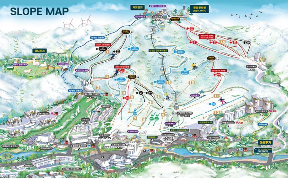 마지막으로 용평 스키장 전체 슬로프 및 가이드맵을 첨부하였으니 필요하신 분은 다운로드하세요!
