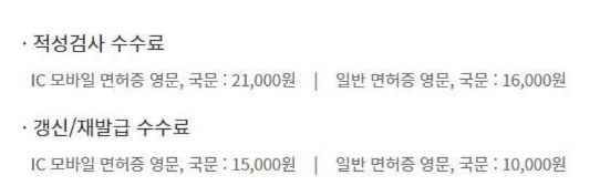 운전면허증 갱신 및 재발급 수수료는 IC 모바일 면허증 15,000원, 일반 면허증 10,000원입니다. 자세한 수수료는 아래를 참고하세요.