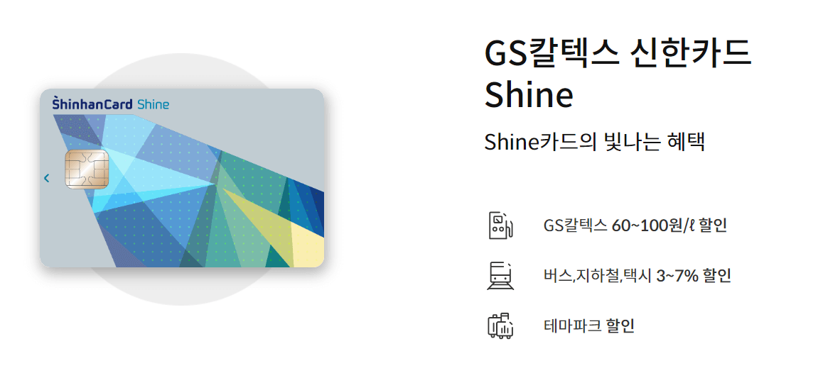 GS 칼텍스 신한카드는 리터당 60~100원 청구할인으로 전월 이용 금액에 따라 최대 100원까지 할인되는 카드입니다.