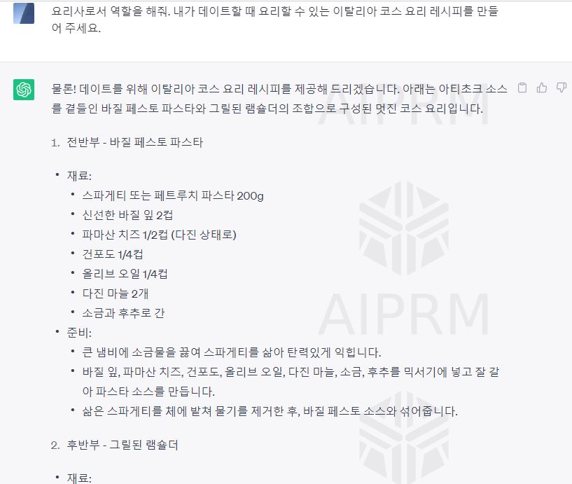 1. Act as (역할을 해줘). Write recipes (레시피를 써줘)