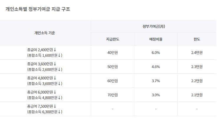 소득별 정부기여금