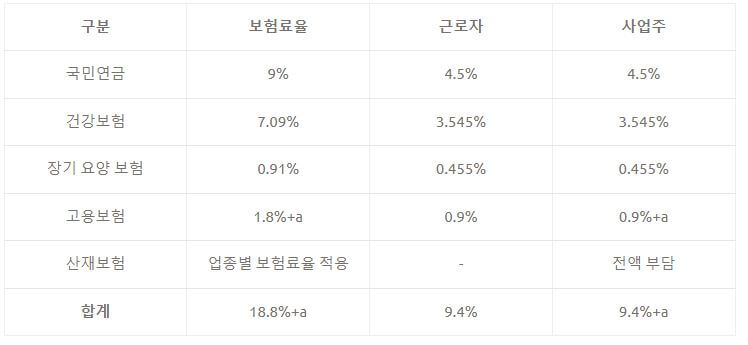 2023 연봉 실수령액은 원천징수되는 4대 보험과 각종 세금을 제한 금액입니다. 우선 4대 보험료로 얼마가 나가는지 정확히 계산할 필요가 있습니다. 물론 직장가입자와 사업자는 보험료율이 다르므로 아래 표를 확인하세요!