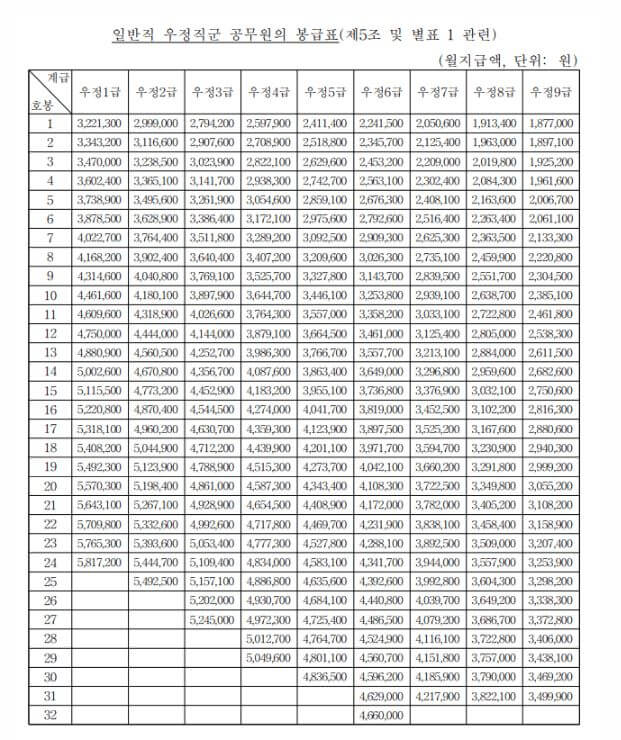 2024년 공안업무 등에 종사하는 공무원 봉급표