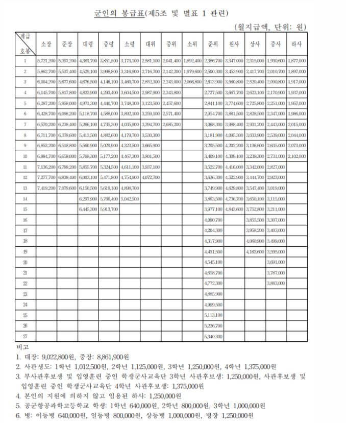 오늘도 대한민국을 지키기 위해 헌신하는 군인 여러분들께 감사를 드립니다. 오늘은 2024년 군인 봉급표를 장교, 부사관, 병사로 나눠 다운로드할 수 있도록 정리하였으며, 군인 수당 종류에 대