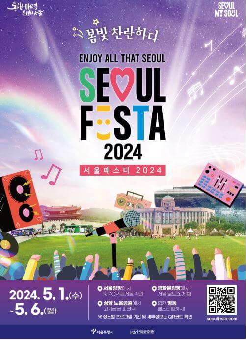 2024 서울페스타는 2024년 5월 1일 (수) ~ 5월 3일 (금)까지 총 3일간 서울광장, 광화문광장, 상암 노을공원 및 명동에서 열리는 축제로서 다양한 공연과 오감 만족 체험 프로그램 등 각종 연계행사가 펼쳐집니다.